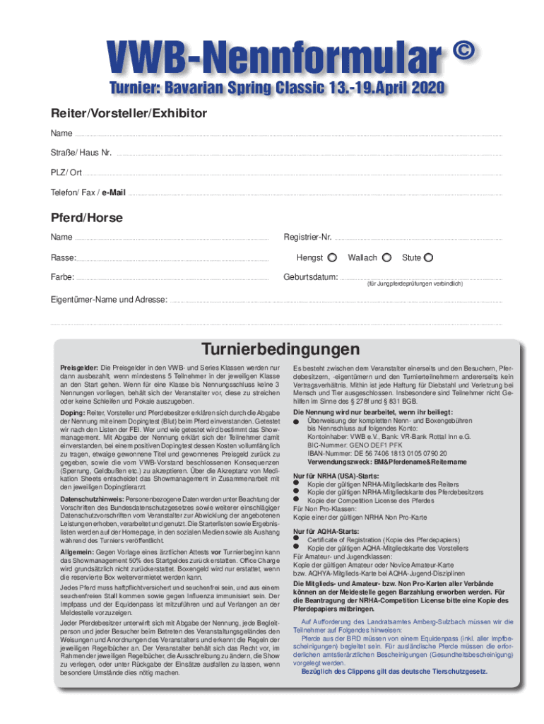 VWBNennformularTurnier: Bavarian Spring Classic 13.19. April 2020Reiter/Storyteller/Exhibitor