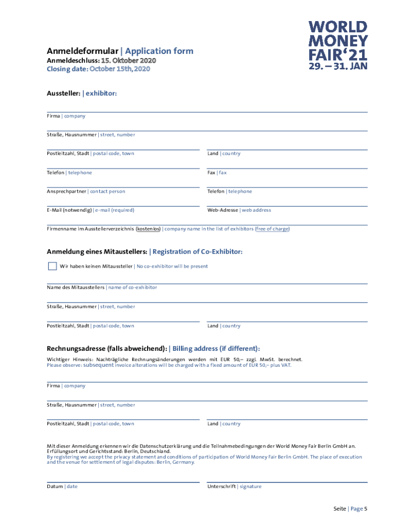 IRE ANMELDEUNTERLAGEN YOUR APPLICATION FORMSBitte zurckschicken a Please reply to: application worldmoneyfair.de Fax +49 (30) 32 76 44 02www.worldmoneyfair.despite Page 1SeitePage9 511 25 278 Amending