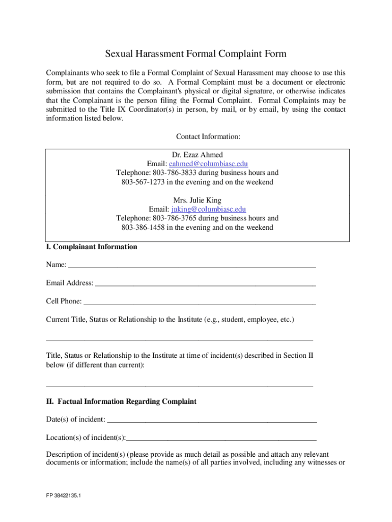 Sexual Harassment Formal Complaint Form