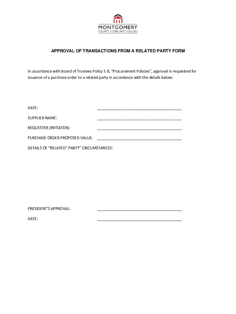 APPROVAL OF TRANSACTIONS FROM A RELATED PARTY Forming accordance with Board of Trustees Policy 5.8, Procurement Policies, approval is requested for issuance of a purchase order to a related party