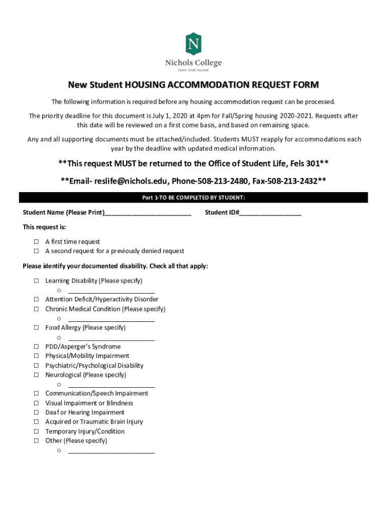 The following information is required before any housing accommodation request can be processed. The priority deadline for this document is July 1, 2020,
