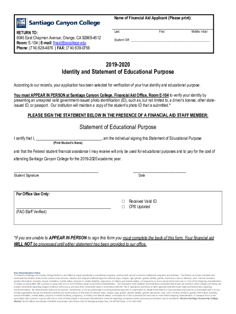 Name of Financial Aid Applicant (Please print): RETURN TO: 8045 East Chapman Avenue, Orange, CA 928694512 Room: E104 Email: fin aid college.edu Phone: (714) 6284876 FAX: (714) 6390756LastFirstMiddle