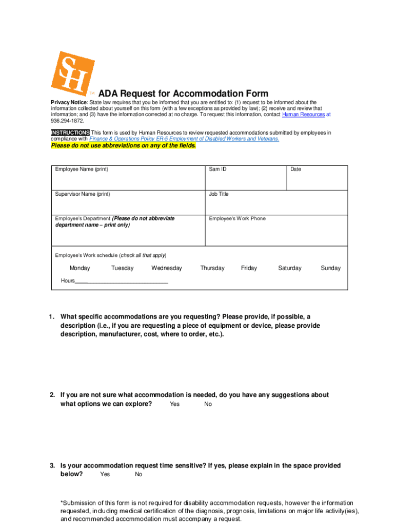 Get the free ADA Request for Accommodation Form - Sam Houston State ...