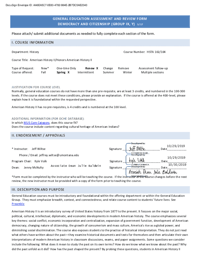 DocuSign Envelope ID: AA6EA5C70E834782984E2B7DC5AE2343GENERAL EDUCATION ASSESSMENT AND REVIEW FORM