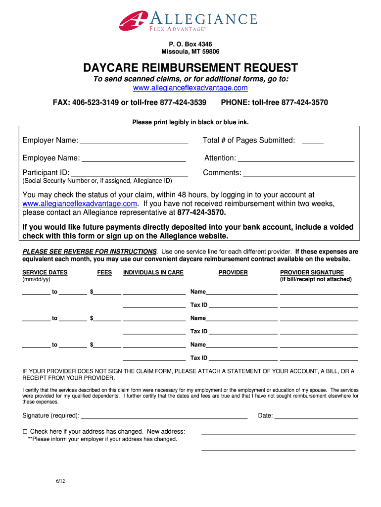 Get the free Daycare Reimbursement Request Form