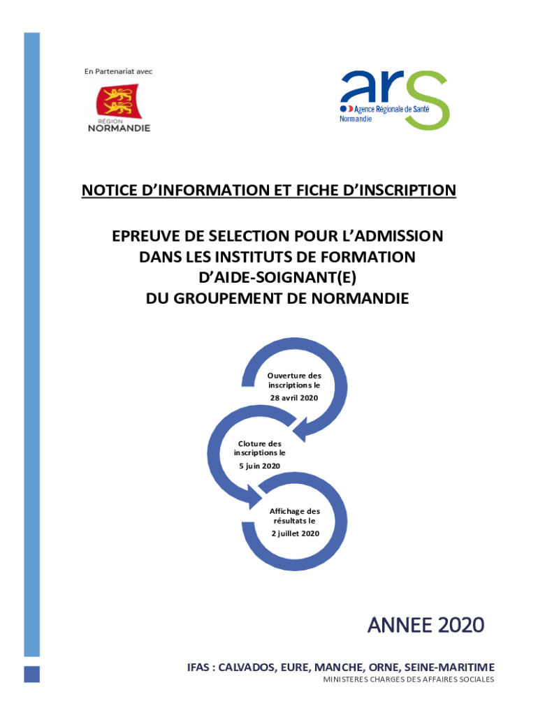 NOTICED INFORMATION ET FICHE INSCRIPTION PROVE DE SELECTION POUR ADMISSION DAYS LES INSTITUTE DE FORMATION DAIDESOIGNANT(E) DU PROCUREMENT DE NORMANDIEOuverture DES inscriptions LE 28 April 2020Cloture