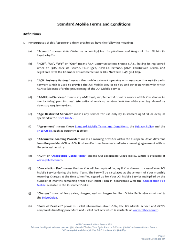 Standard Mobile Terms and Conditions