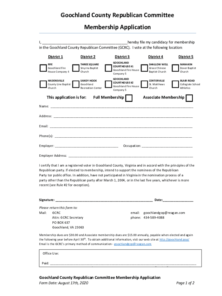 Get the free Goochland County Republican Committee Membership Application