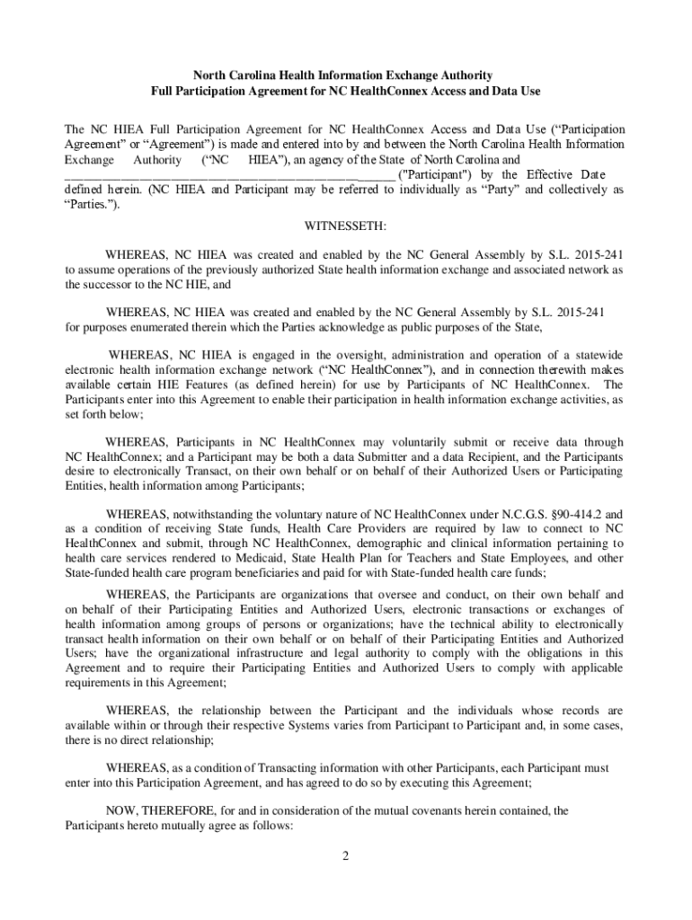 Get the free NC HIEA Full Participation Agreement NC Health ...