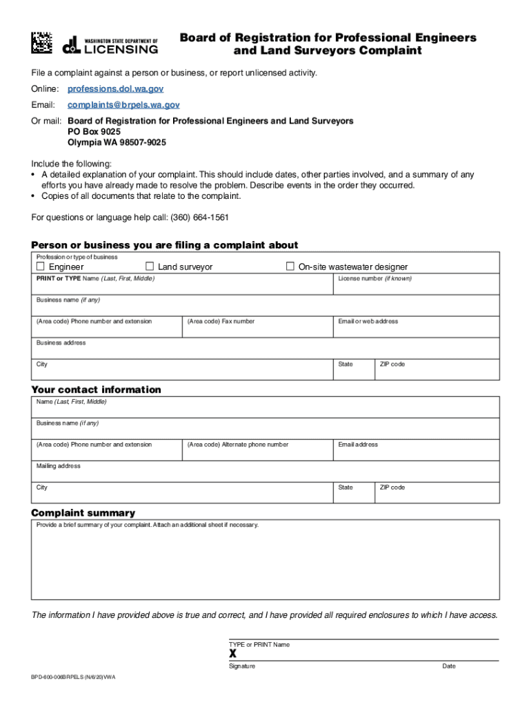Get the free Board of Registration for Professional Engineers and Land Surveyors Complaint