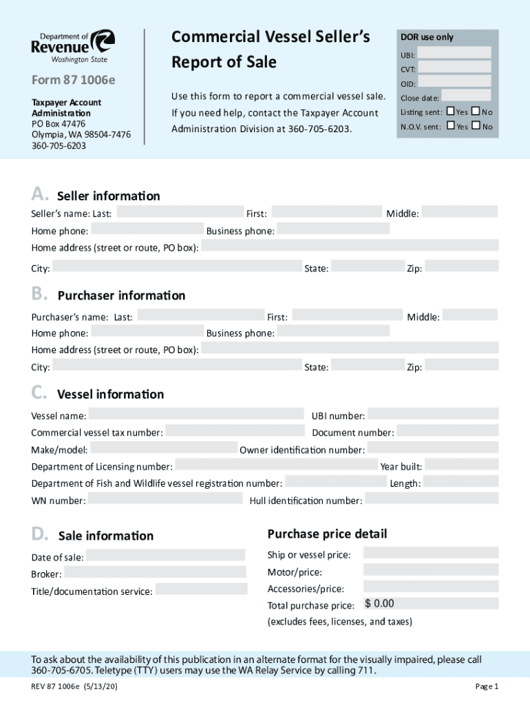 Commercial vessel tax can be filled out online through the Washington Department's website or by mail.