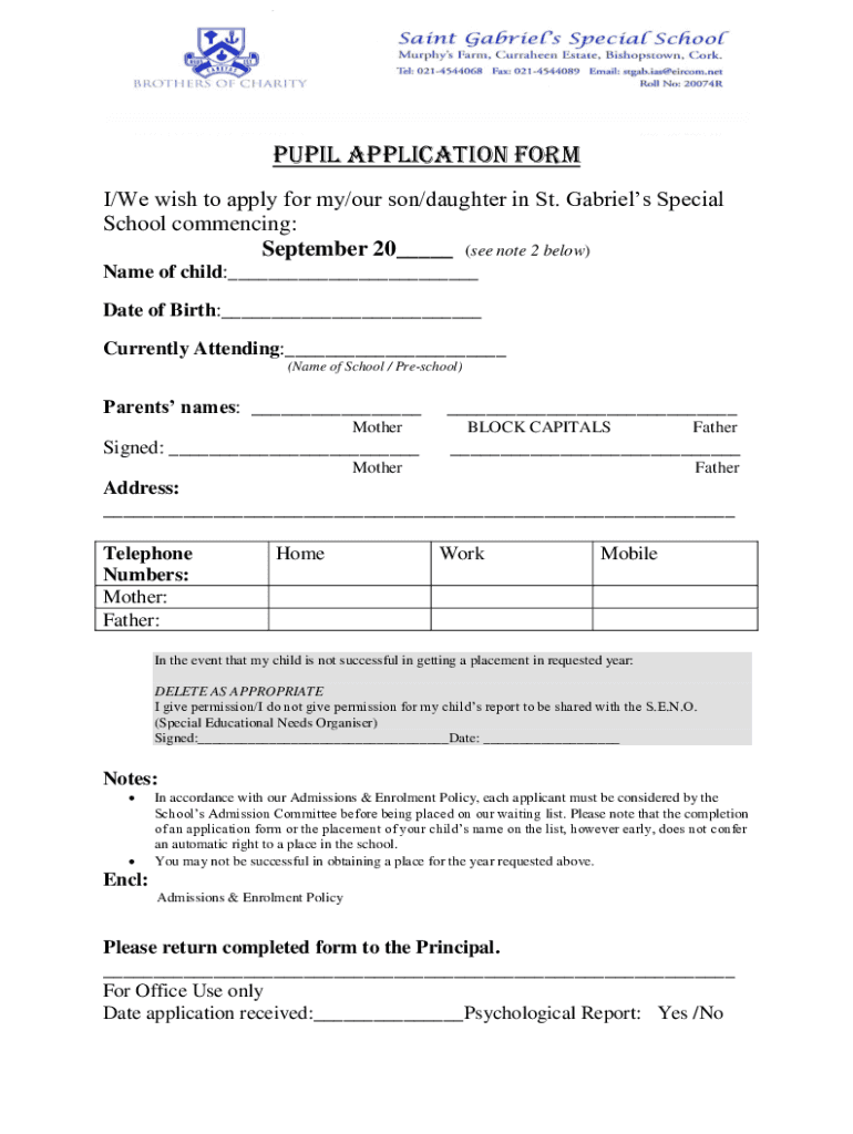 Get the free PUPIL APPLICATION FORM - St Pauls Special Needs School Cork