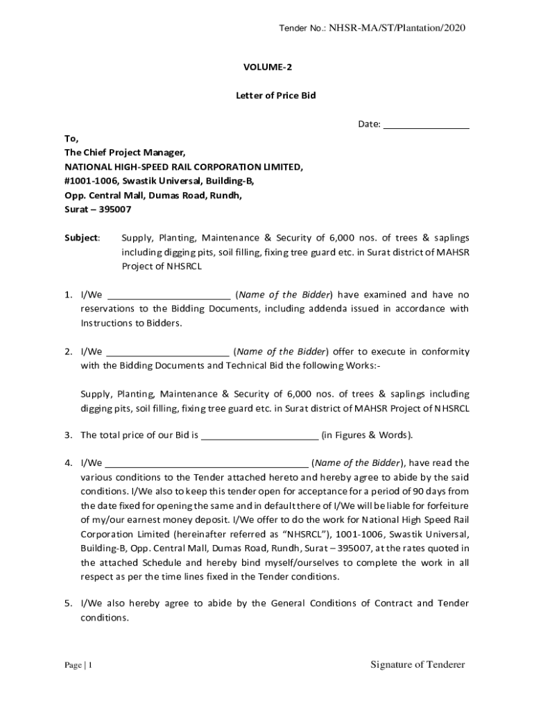Get the free VOLUME-2 Letter of Price Bid NATIONAL HIGH-SPEED RAIL ...