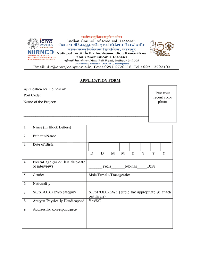 Get the free APPLICATION FORM - National Institute for Implementation ... - dmrcjodhpur nic