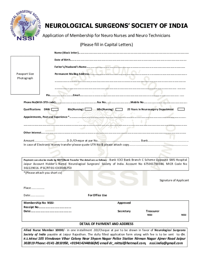 Members can fill out the neurological society of Indian neurological forms online or submit them via mail.