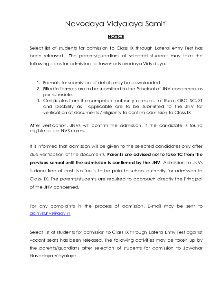 Navodaya Vidyalaya Samiti is required to be filed by the management committee of each Navodaya Vidyalaya school.