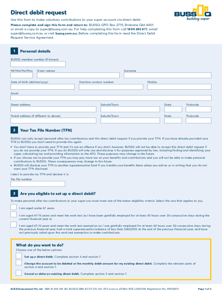 Use this form to make voluntary contributions to your super account via direct debit.