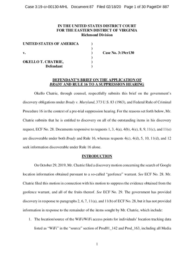 Case 3:19cr00130MHL Document 87 Filed 02/18/20-Page 1 of 30 Paged# 887IN THE UNITED STATES DISTRICT COURT