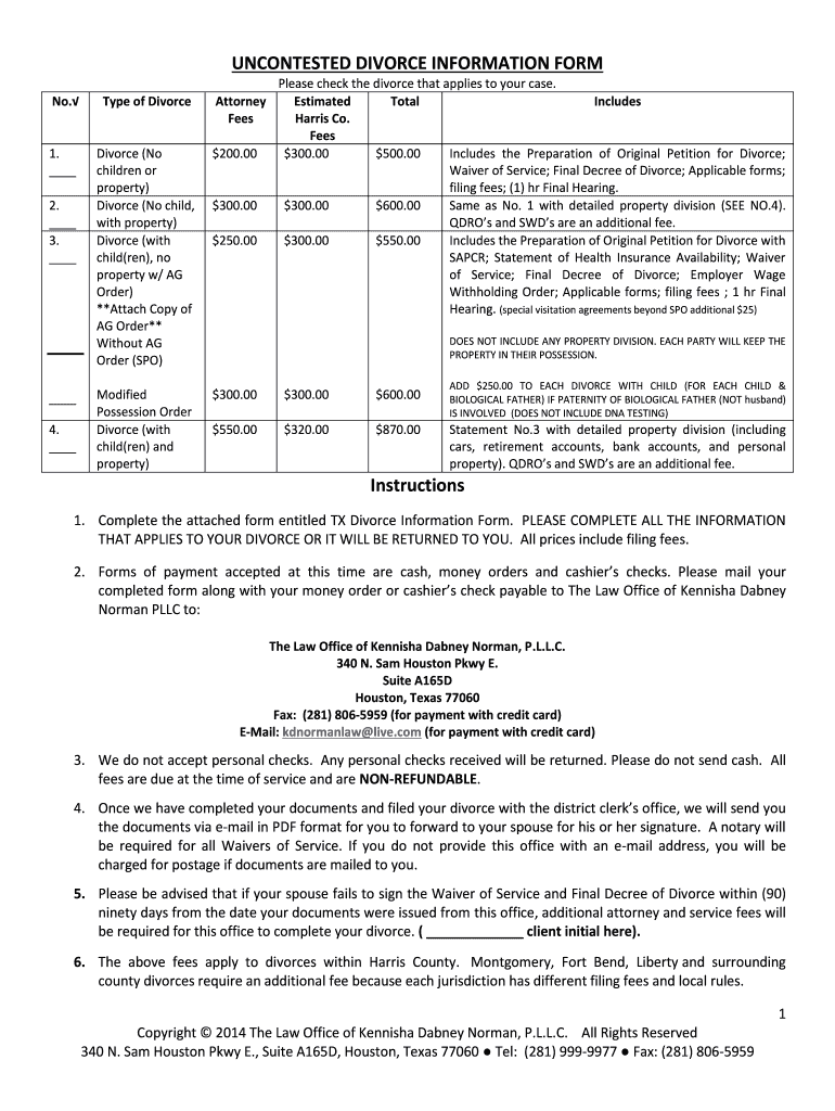 Get the free Texas Uncontested Divorce Information Form