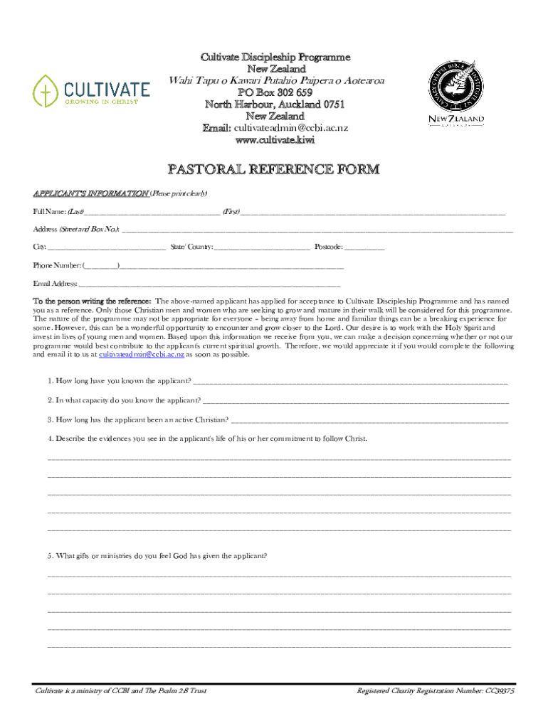 Cultivate Discipleship Program New ZealandWahi Tape o Award Ontario Paper o Altered PO Box 302 659 North Harbor, Auckland 0751 New Zealand Email: cultivate admin CBI.ac.NZ www.cultivate.kiwiPASTORAL