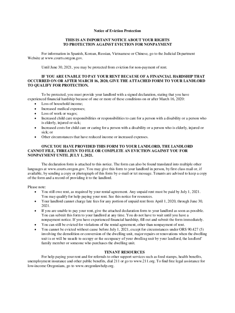 The notice of eviction protection is a legal document that helps protect tenants from being evicted from their rental property.
