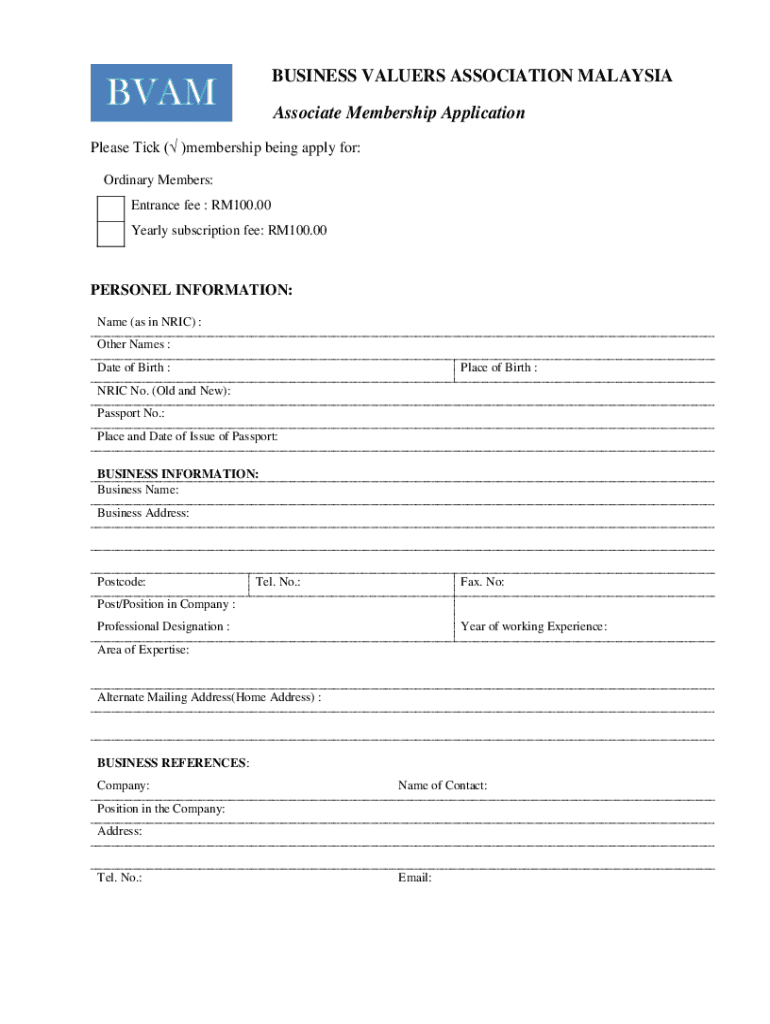 Get the free BUSINESS VALUERS ASSOCIATION MALAYSIA Associate Membership ...