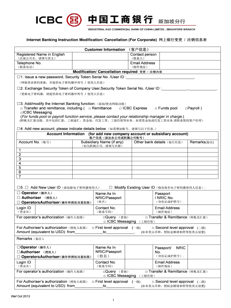 Get the free Internet Banking Modification/Cancellation Form (Corporate)