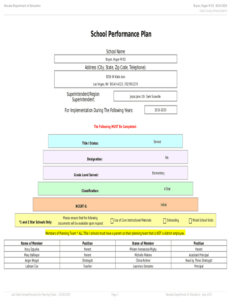 Nevada Department of Education Bryan, Roger M ES 20192020