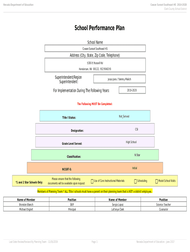 Nevada Department of EducationCowan Sunset Southeast HS 20192020