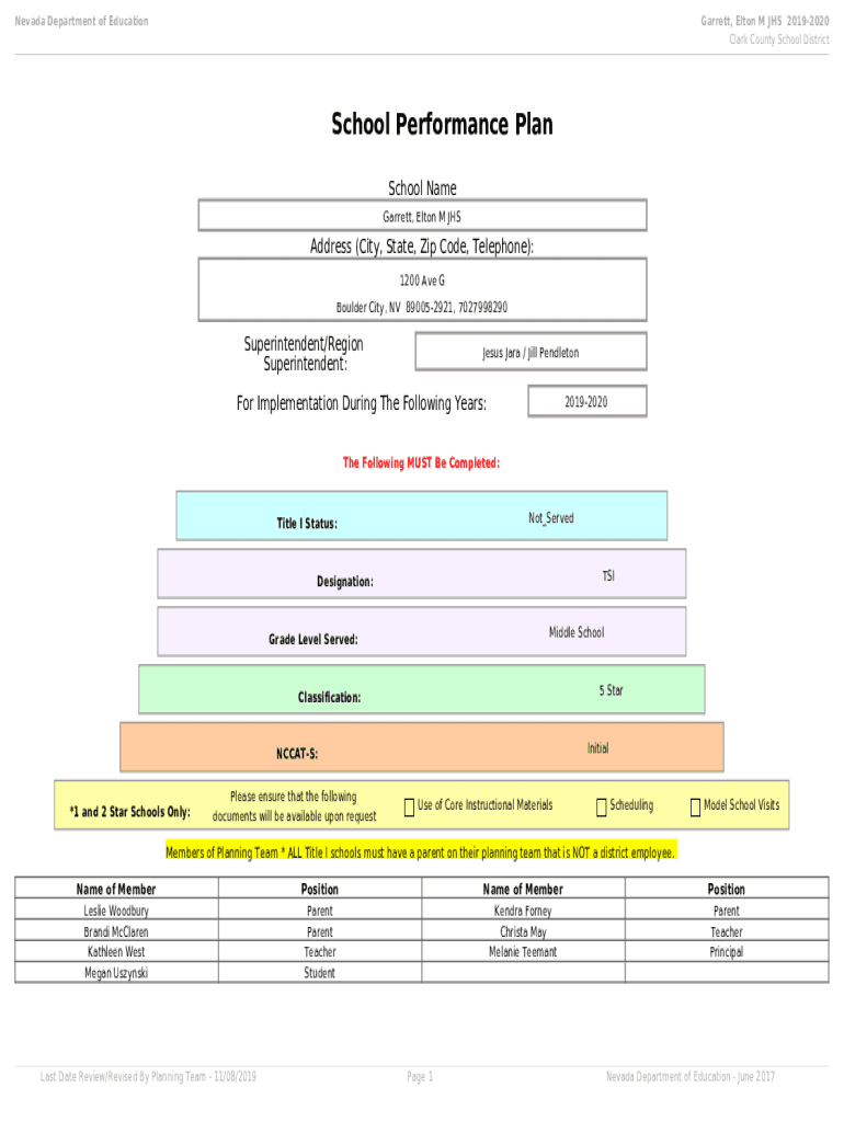 Nevada Department of Education Garrett, Elton M JHS 20192020