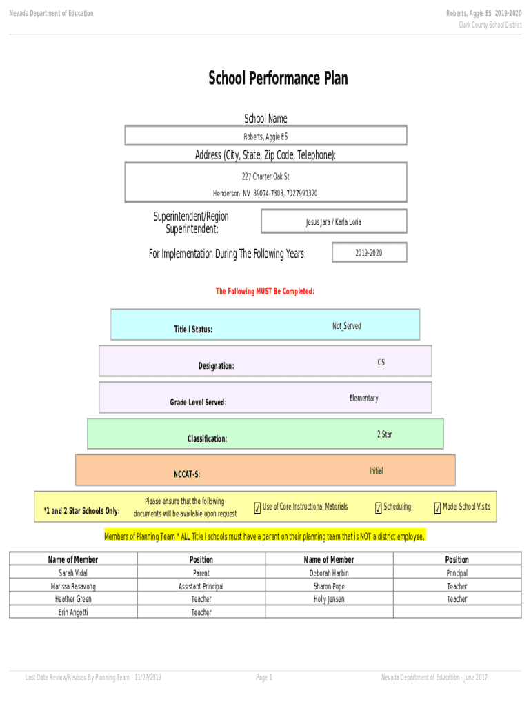 Nevada Department of Education Roberts, Aggie ES 20192020