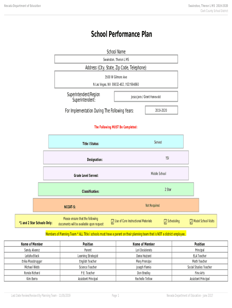 Nevada Department of EducationSwainston, Theron L MS 20192020