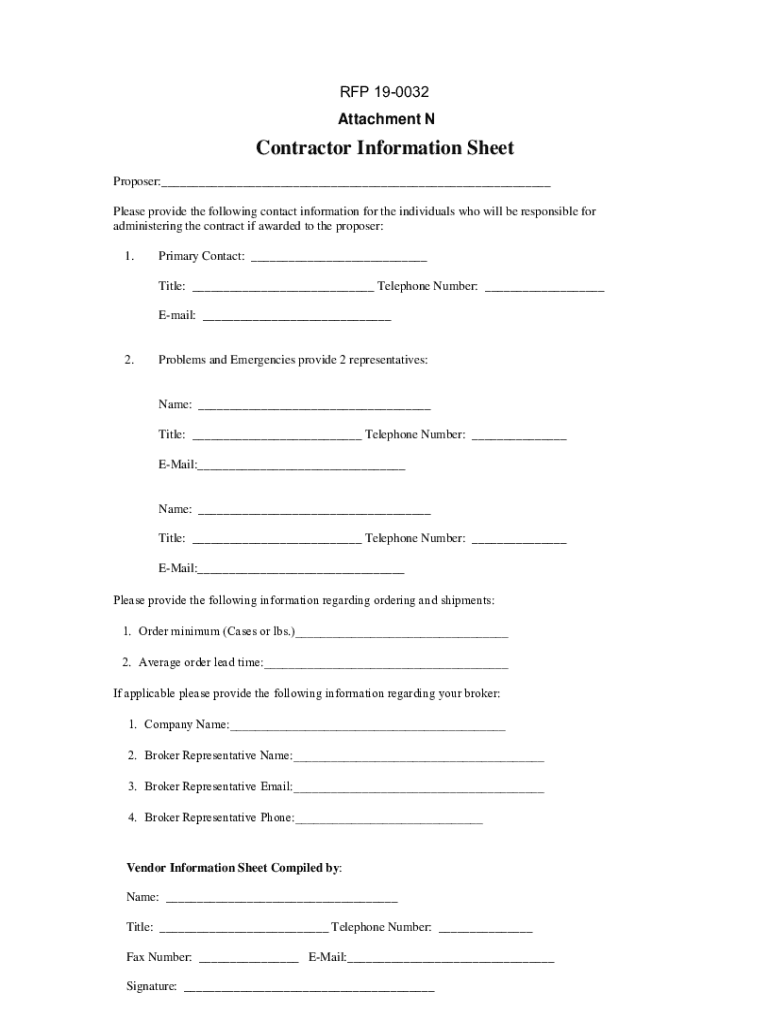 RFP 190032 Attachment Contractor Information Sheet Proposer: Please provide the following contact information for the individuals who will be responsible for administering the contract if awarded