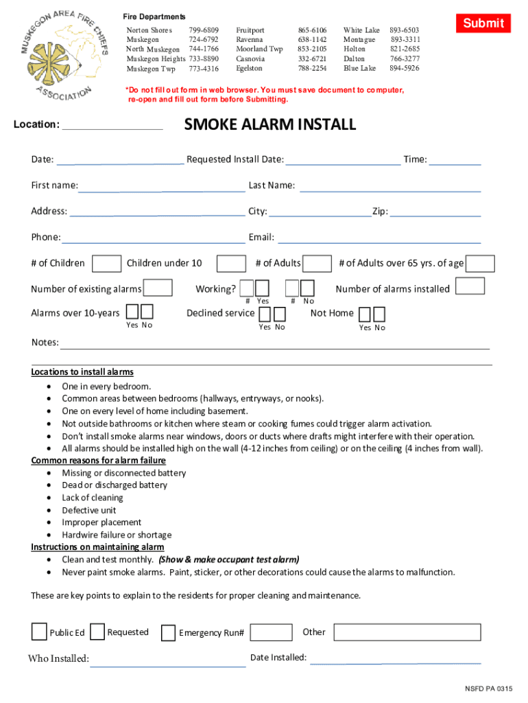 Submit the completed form to the North Muskegon Fire Department in person or through the designated submission method.