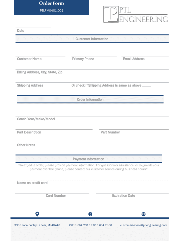 Order Form PTLFM0401.001Date Customer InformationCustomer Preprimary Phonemic AddressBilling Address, City, State, Zip Shipping Address check if Shipping Address is same as above Order InformationCoach