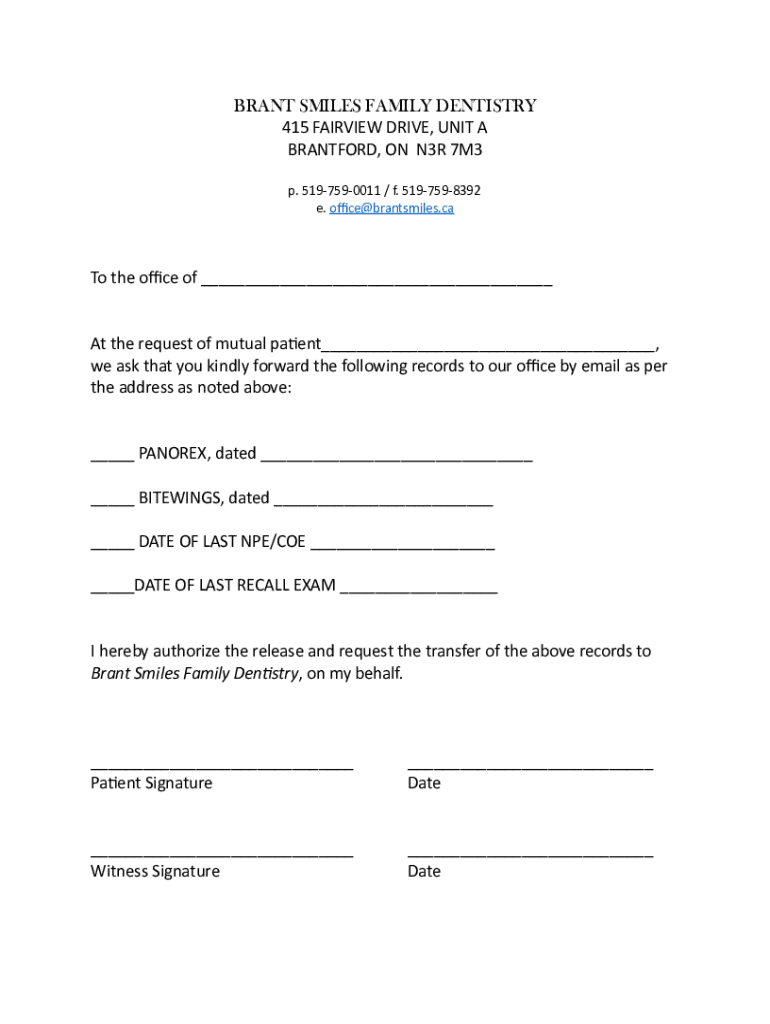 BRANT SMILES FAMILY DENTISTRY 415 FAIRVIEW DRIVE, UNIT BRANTFORD, ONN3R 7M3p. 5197590011 / f. 5197598392e. One brantsmiles. Cato the one of At the request of mutual parent, we ask that you kindly