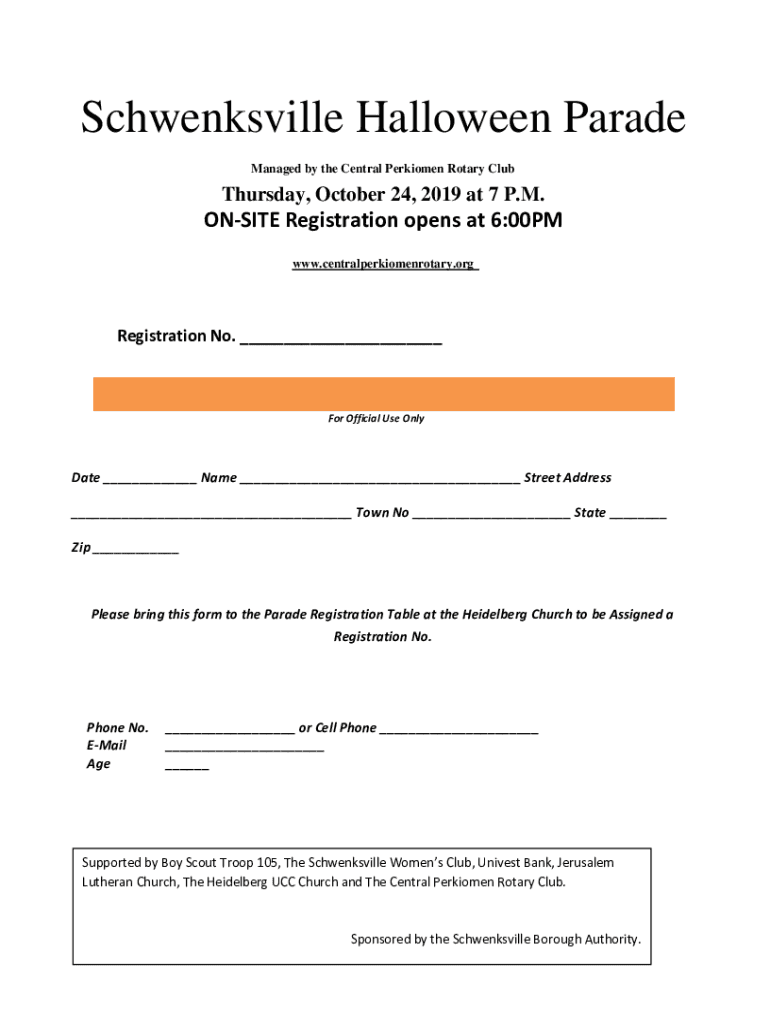 Schwenksville Halloween Parade is not the form you're looking for?Search for another form here.