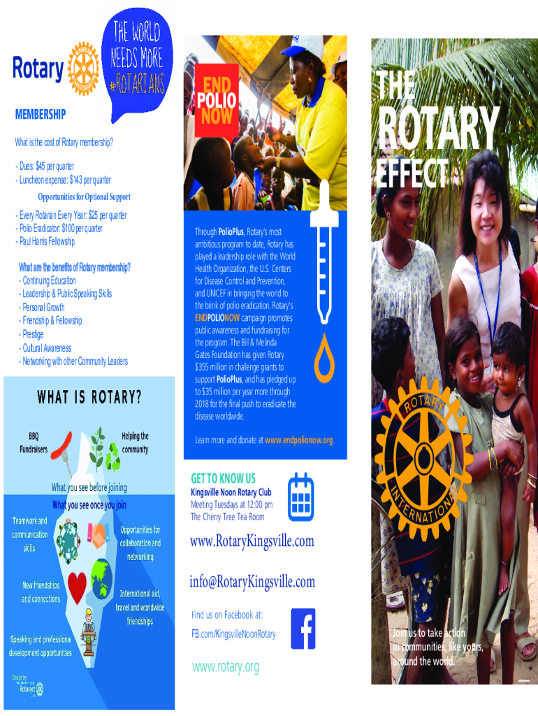 THEROTARYMEMBERSHIP What is the cost of Rotary membership?EFFECT Dues: $45 per quarter Luncheon expense: $143 per quarter Opportunities for Optional Support Every Rotarian Every Year: $25 per quarter