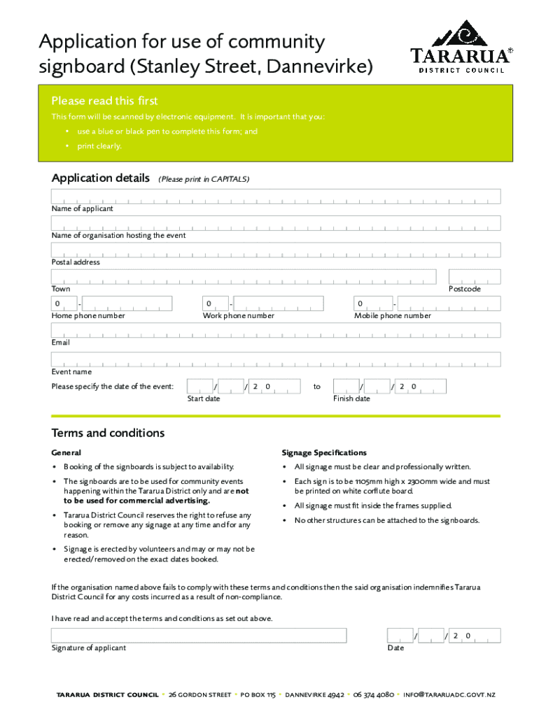 Typically, an application for use of will require information such as the name of the applicant, the purpose of the requested use, the dates and times of use, and any additional requirements or special considerations.