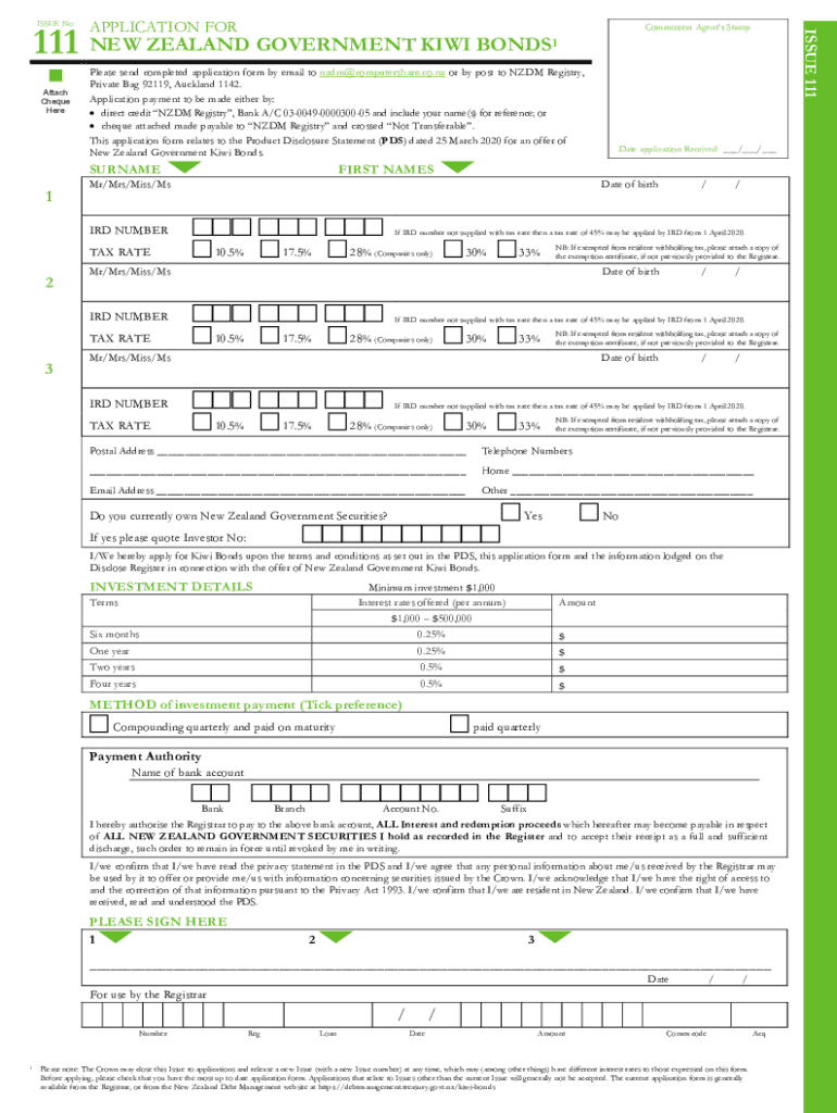 Get the free ISSUE No: APPLICATION FOR 112 NEW ZEALAND GOVERNMENT KIWI BONDS