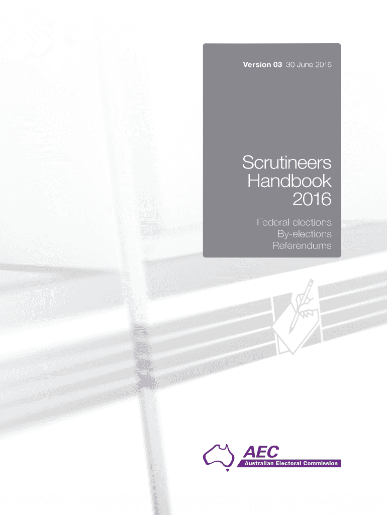 Version 03 30 June 2016Scrutineers Handbook 2016 Federal elections By elections ReferendumsNomination Guide for Candidates1Published by the Australian Electoral Commission www.aec.gov.au ISBN 9781921427367
