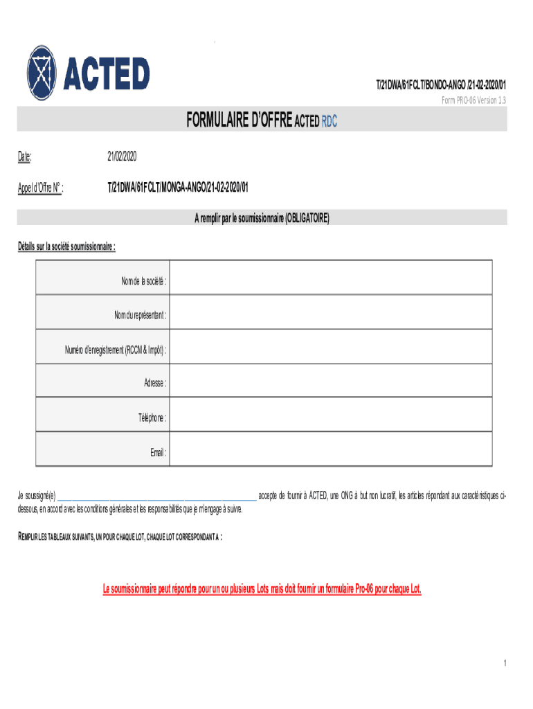 Obtenir le gratuit A remplir par le soumissionnaire (OBLIGATOIRE) - ACTED
