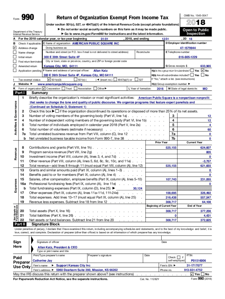 Form990OMB No. 15450047Return of Organization Exempt From Income Tax2018Under section 501(c), 527, or 4947(a)(1) of the Internal Revenue Code (except private foundations) Department of the Treasury