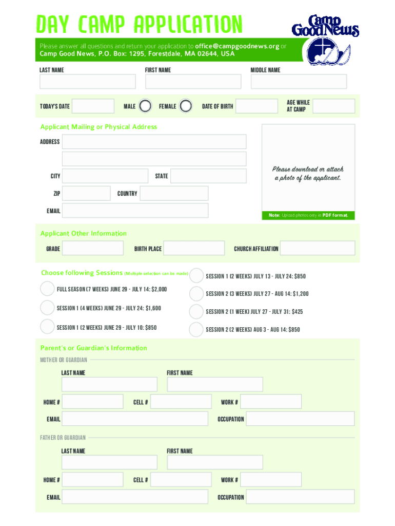 Please answer all questions and return your application to office@campgoodnews.org or