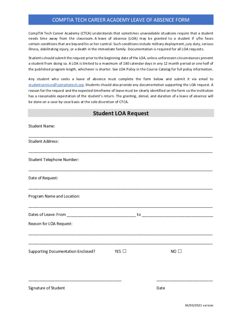 COMPTON TECH CAREER ACADEMY LEAVE OF ABSENCE FORM