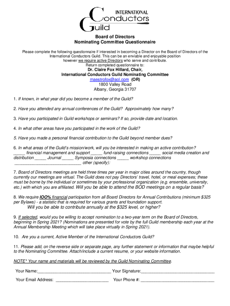 Nominating Committee Questionnaire