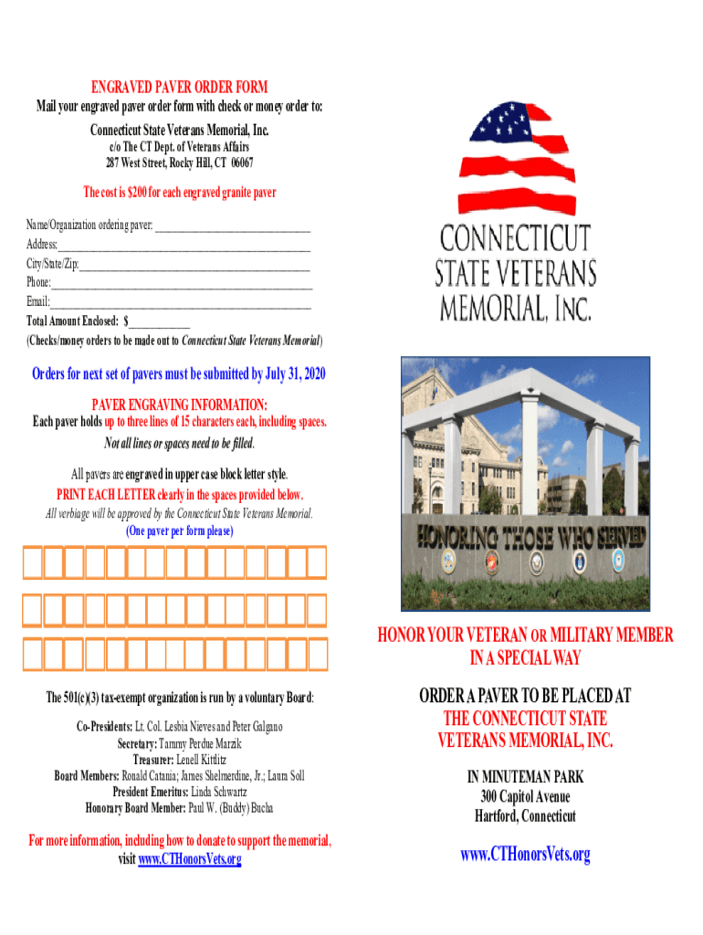 Get the free ENGRAVED PAVER ORDER FORM Connecticut State Veterans Memorial ...
