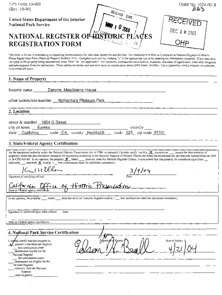 Form 10900 (Rev. 1090)OMB No. 10240018United States Department of the Interior National Park ServiceNATIONAL REGISTER O REGISTRATION From This form is for use in nominating or requesting determinations