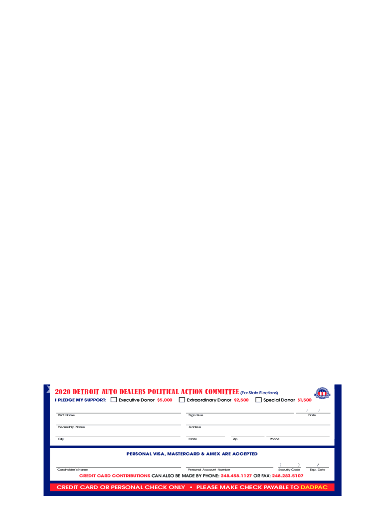 What CAN ACCOMPLISH with a STRONG PAC!2020 Extraordinary times call for extraordinary support of DAD PAC This may be the most important DAD PAC contribution you have made as a dealer. Joseph L. Lunghammer2020.