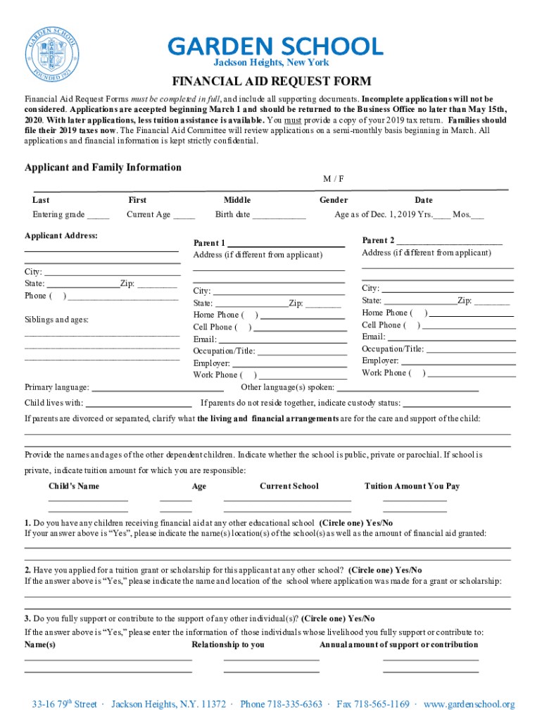Get the free Financial Aid Request Form 4-2019 - Garden School